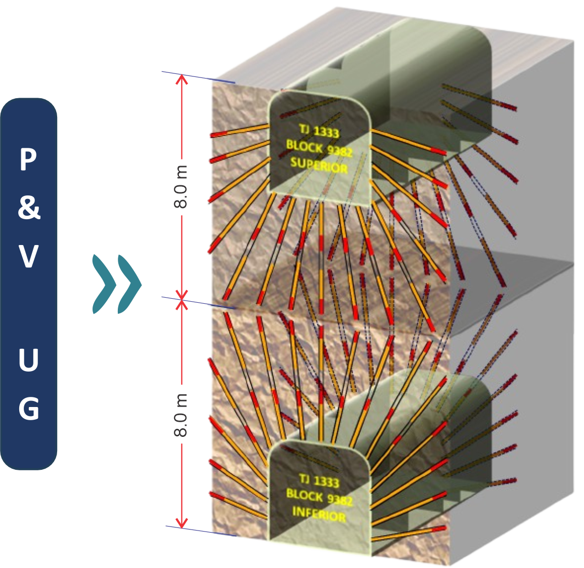 • Diseño de voladura controlada, desacoplada y amortiguada en métodos de explotación subterránea masiva como long hole.